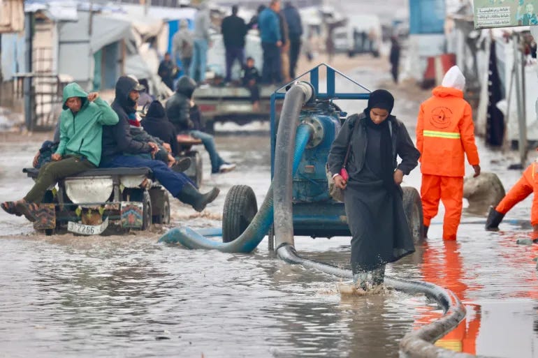 We are watching babies die from hypothermia because Israel won’t allow warm clothes or proper tents into Gaza, we are watching families wake up in flooded shelters with nowhere to go, we are watching the deliberate creation of conditions where winter itself becomes a weapon. At least 16 people died during the December storms, including a two-week-old infant found “cold as ice” in a flooded tent, a 29-day-old premature baby who died from hypothermia despite his family’s desperate attempts to keep him warm. These aren’t natural deaths, these are murders by policy, the predictable result of blocking the materials that would allow people to survive a winter storm.